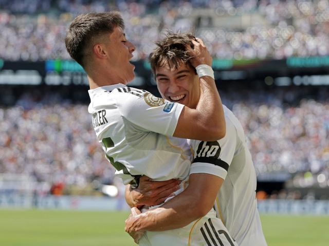 21岁的贡萨洛,很快就用进球回报阿隆索的信任。第10分钟,居勒尔将球吊入禁区,贡萨洛凌空垫射,将球送入大门,皇马1-0领先!