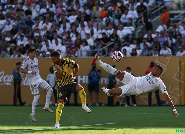 比赛最后6分钟,场面失控。第92分钟,多特的拜尔破门;2分钟之后,姆巴佩替补凌空卧射打进世俱杯第1球;然而,吕迪格防守犯错,怀森禁区犯规送出点红套餐,吉拉西在第98分钟点球得分,比分定格在3-2,皇马惊险晋级。