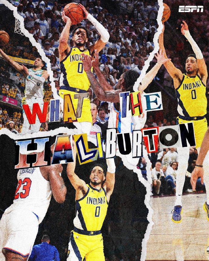 哈利伯顿今年季后赛的表现确实是非常出色,多次上演了绝杀神迹,每一轮都至少有一次,分别是首轮G5对加时赛上篮绝杀雄鹿,次轮G2后撤步三分绝杀骑士,东决G1踩线长两分绝平尼克斯的,总决赛G1最后0.3秒中投准绝杀雷霆。